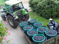Le raisin rentre des vignes pour subir les actions qui le transformerons en vin.